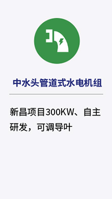 3、低水头机组(整装潜水贯流一体机组)。配置适当的风、光、气、储互补电站,利用自研交直交系统进行整合并网或自发自用。